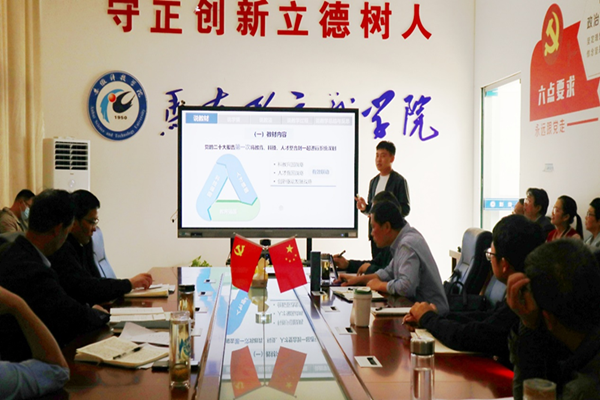 刘阿磊、王继涛、王丽萍和赵庆灿等四位老师依次对四个主题“开辟马克思主义中国化时代化新境界”“加快建设教育、科技、人才强国”“中国经济行稳势升”“以新安全格局保障新发展格局”进行了教学说课展示。杨仕勇、王方友、王维美、赵仁青等老师,从环节、内容、进程等教学方面进行了点评。