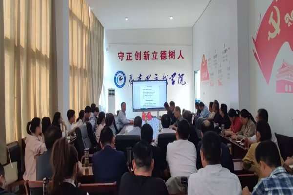 为深入学习贯彻习近平新时代中国特色社会主义思想,进一步加强“习近平新时代中国特色社会主义思想概论”课程建设,马克思主义学院于10月19日召开集体备课会。备课会邀请全国高校思想政治理论课教指委委员员、习近平新时代中国特色社会主义思想概论课课件制作参与专家、合肥工业大学黄志斌教授到会指导。马克思主义学院党总支书记杨仕勇,副书记、院长张德化,副院长张栋及全体思政课教师参加了本次备课会。