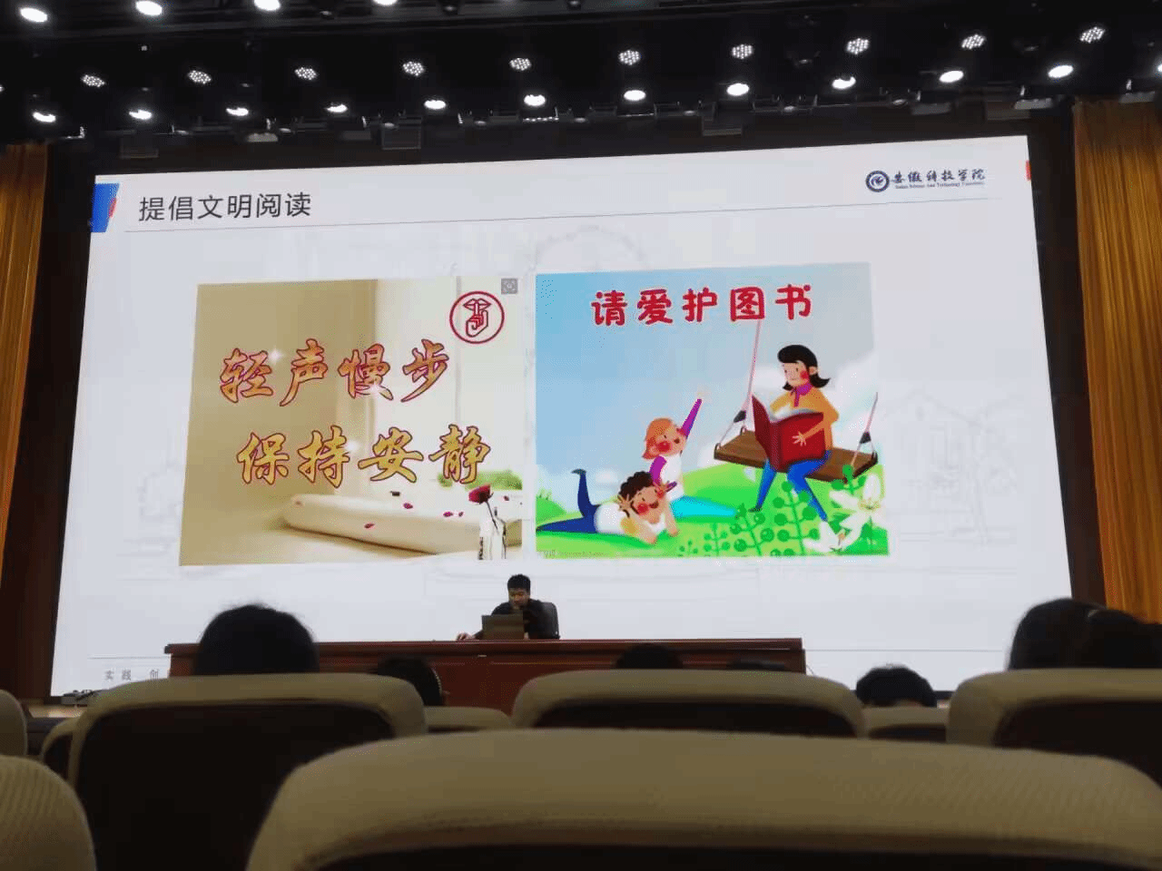 蒋亚博首先向同学们介绍了图书馆基本信息、图书馆的类型以及校图书馆的简介。他强调读书能明德致知,提升自我。随后蒋亚博向大家详细介绍了图书馆主要藏书类型以及图书馆相关借阅制度和借阅检索方法。让大家对本校图书馆有了更深入的认识。最后蒋亚博鼓励同学们利用好图书馆资源,提倡同学们爱护图书,遵守图书馆相关规定,文明阅读。