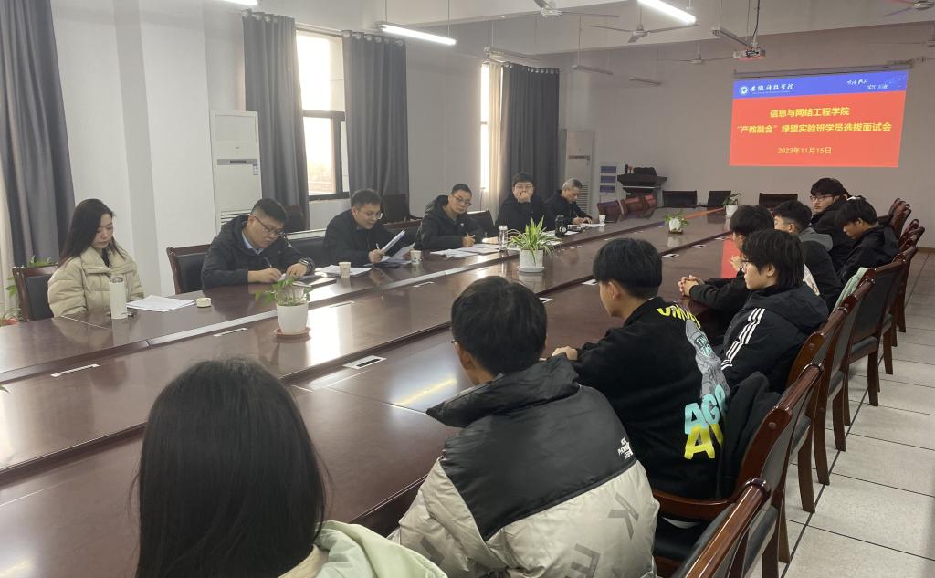 11月15日下午,信息与网络工程学院在尚行楼B418召开2023年“产教融合”绿盟实验班学员选拔面试会,学院党政领导、有关教师和北京神州绿盟科技有限公司有关工作人员等组成面试专家组参加会议。会议由信息与网络工程学院副院长曹浩主持。