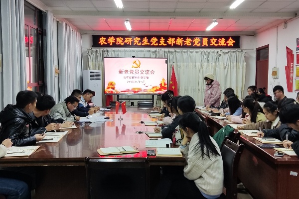 为增强新生党员的组织归属感,强化党支部新生力量,提高党支部的凝聚力和战斗力。11月16日晚,农学院研究生党支部召开新老党员交流会,农学院党政领导和支部全体党员参会,会议由支部书记郑甲成主持。