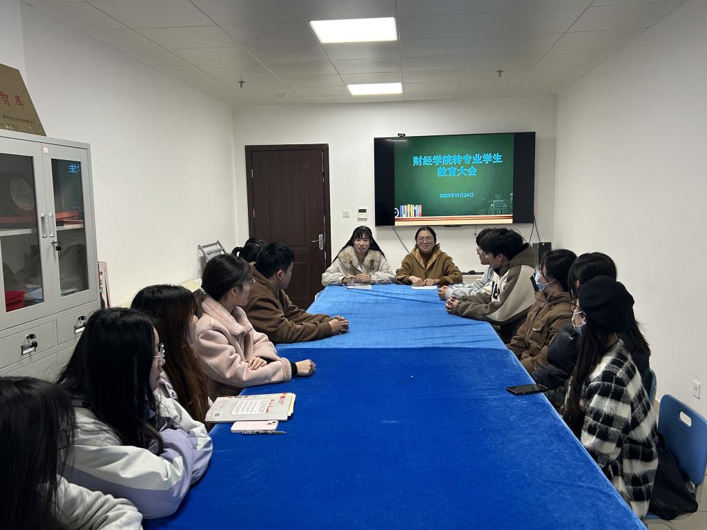 为帮助2022级转专业学生尽快融入新集体,适应新的学习与生活环境,11月24日,财经学院在龙湖校区西附楼212会议室召开2023年秋季学期转专业学生教育大会。会议由辅导员王天云主持,全体转专业学生参加会议。