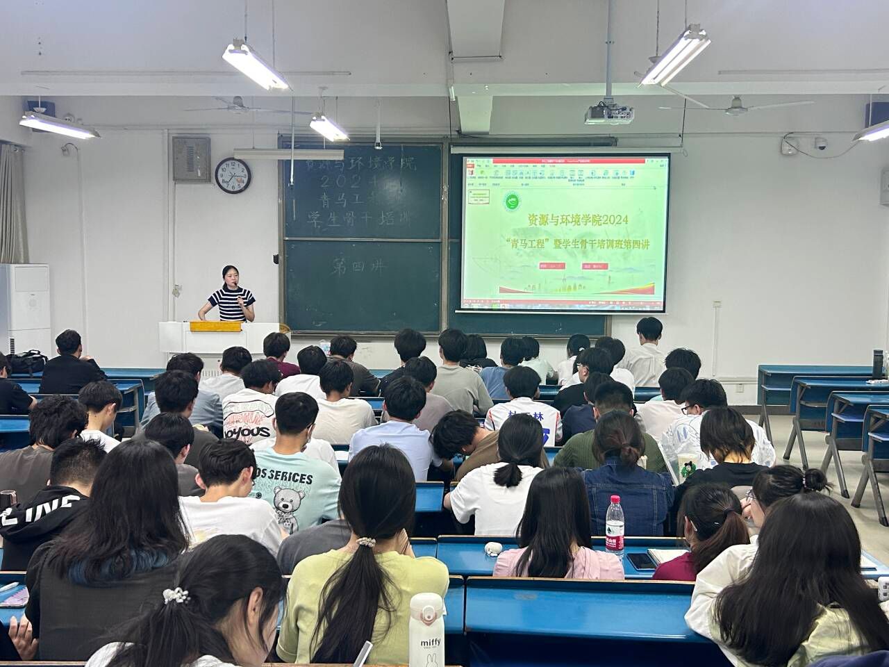 为进一步提升学院学生干部的能力素质,5月17日晚,资源与环境学院在新知楼A110开展了2024年青马工程暨学生骨干培训第四讲,22、23级全体学生干部及学生会全体成员参加培训,专职辅导员王丽萍主持本次培训会。