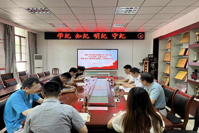 为深入开展党纪学习教育,进一步提升党员纪律意识,6月25日下午,食品工程学院召开党委理论学习中心组2024年第六次集中学习暨党纪学习教育读书班第三次集体学习会议,校纪委副书记张开宝列席旁听并讲授廉政专题党课。会议由学院党委书记付光玺主持。