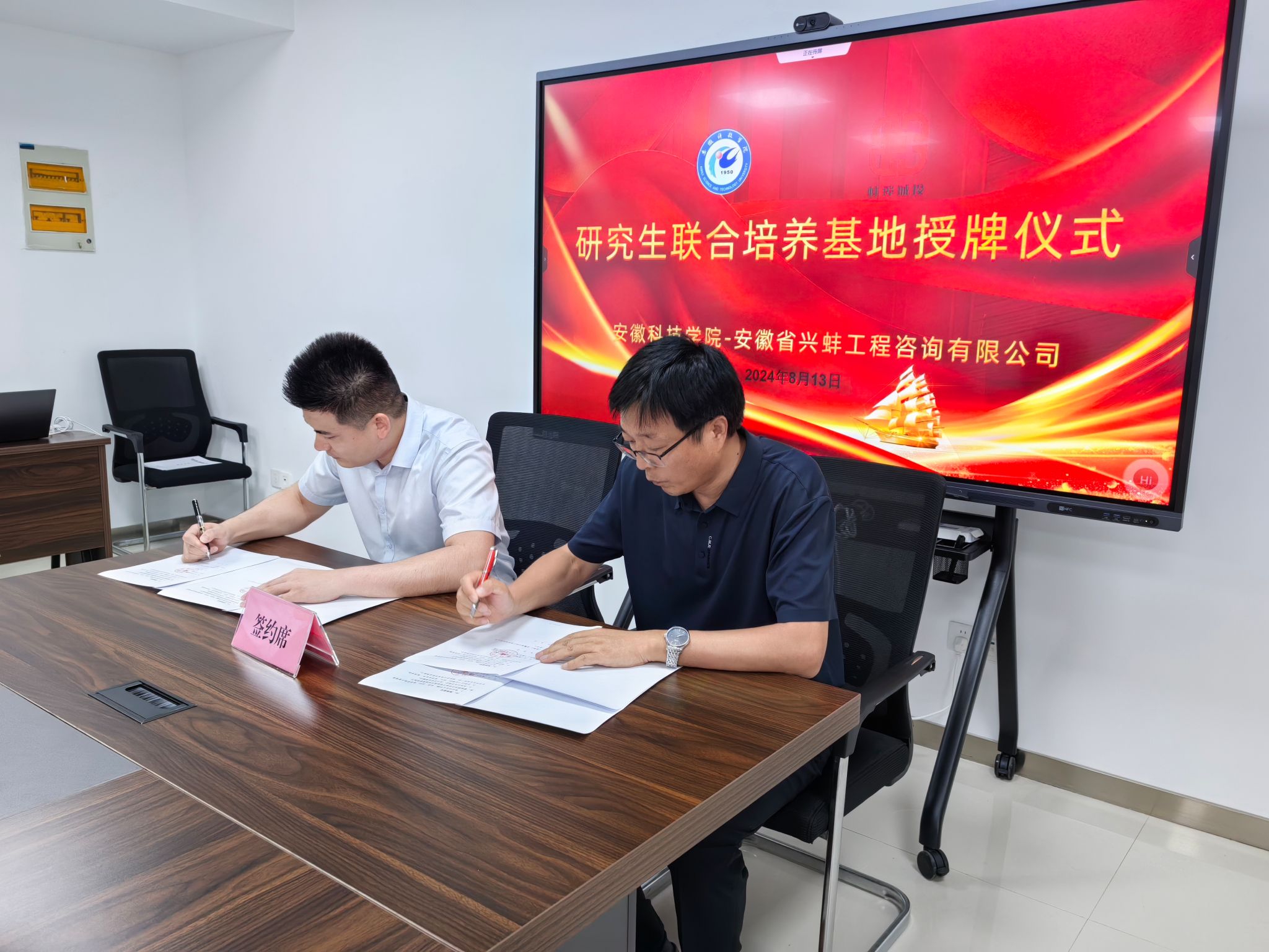会上,双方举行了“kaiyun开云官方网站_kaiyun开云(中国)股份有限公司,共建研究生联合培养基地”授牌仪式,并共同签订了《kaiyun开云官方网站_kaiyun开云(中国)股份有限公司,与安徽省兴蚌工程咨询有限公司校企合作协议书》。(特约通讯员:李永鹏 摄影:李永鹏 审核:丁景良 编辑:陈晋)