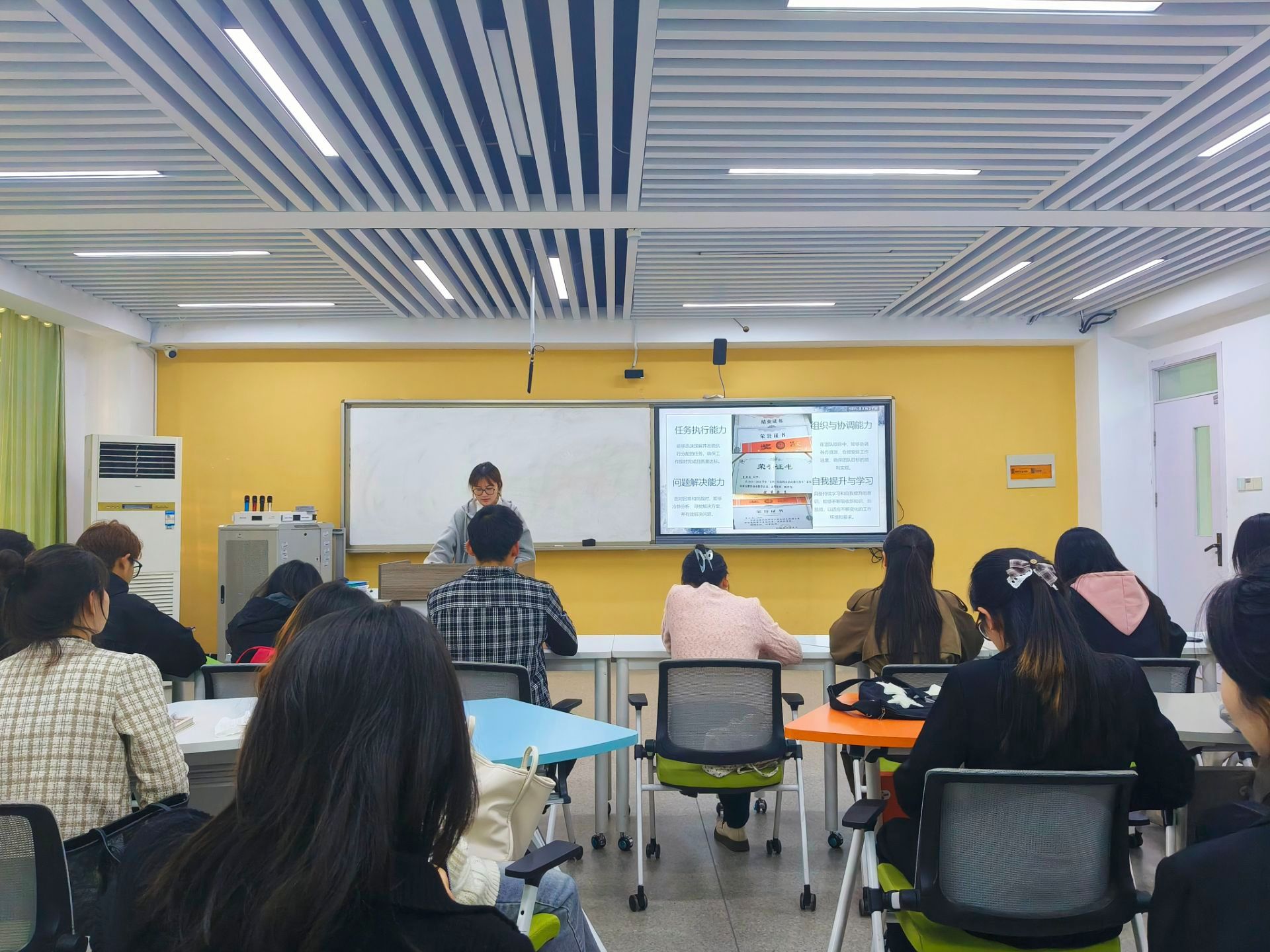 团员发展答辩考察工作按照“坚持标准、调控规模、优化结构、提高质量、发挥作用”的总要求开展。答辩过程中,各位团员发展候选人依次上台,通过PPT演示介绍自己的学习成果、工作任职与志愿服务等经历及未来打算等。各位评委认真倾听大家的展示与答辩,并根据候选人的答辩表现进行评分。答辩会上,同学们精神状态饱满,答辩逻辑清晰,表现出积极向团组织靠拢的迫切愿望,彰显了青年学生勇往直前、力争上游的新时代风貌。