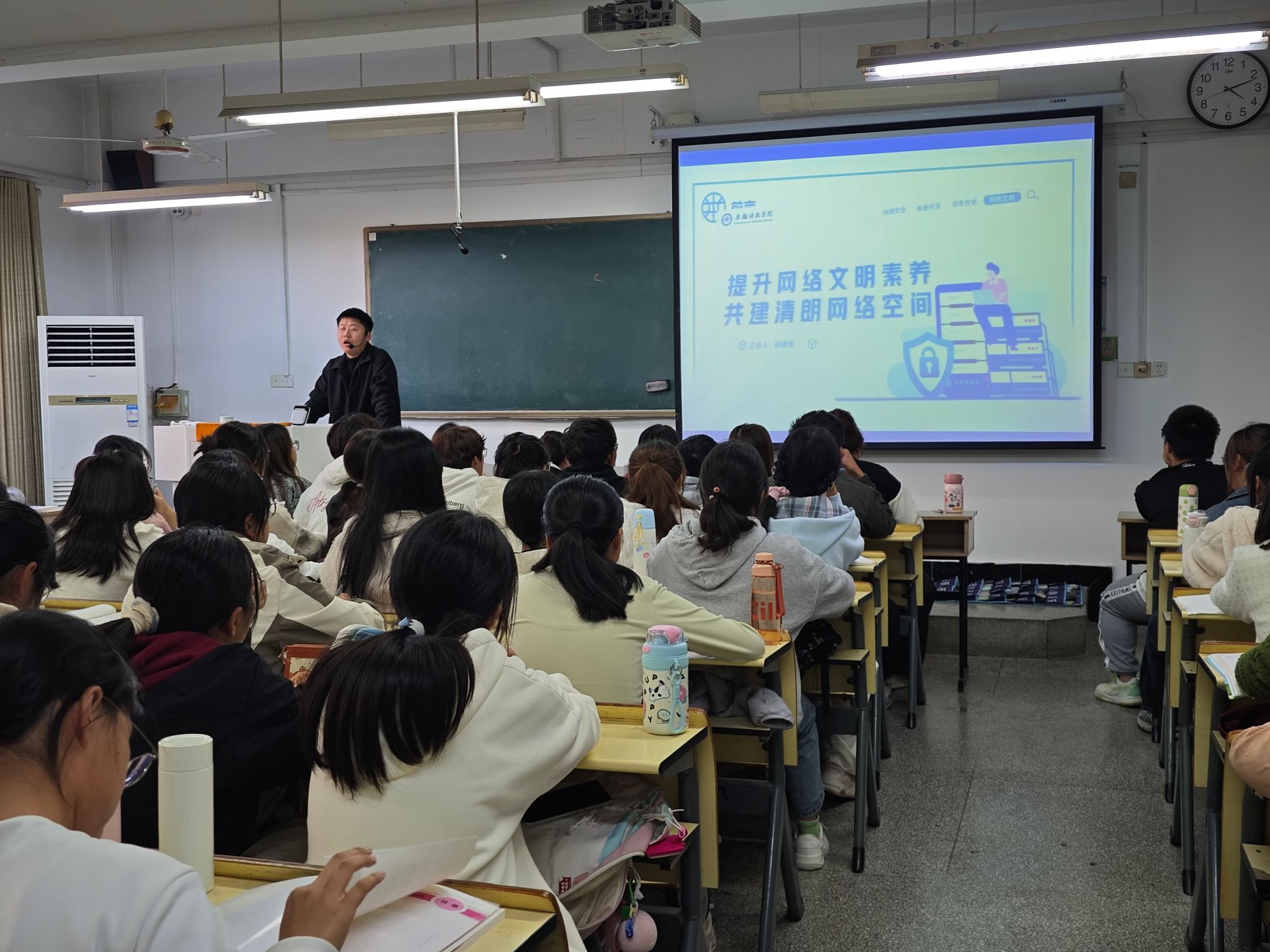 在主题班会上,辅导员老师以我国庞大的网民群体为切入点,深刻阐述“维护网络文明,社会人人有责”的时代命题和重要意义,通过案例分析和交流讨论等形式,对典型案例进行深刻剖析,教育引导同学们积极主动地传播好声音、唱响主旋律,充分展现新时代网络文明向上向好的正能量,彰显新时代大学生踔厉奋发、团结奋斗的精神面貌。