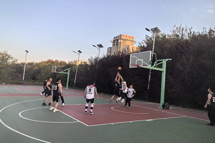 在凤阳校区西区球场,我校教职工篮球队与凤阳县黄湾乡村BA篮球队举行一场友谊比赛。(特约通讯员:张以保 摄影:张以保 审核:汪洋 魏居孟 编辑:李锦)