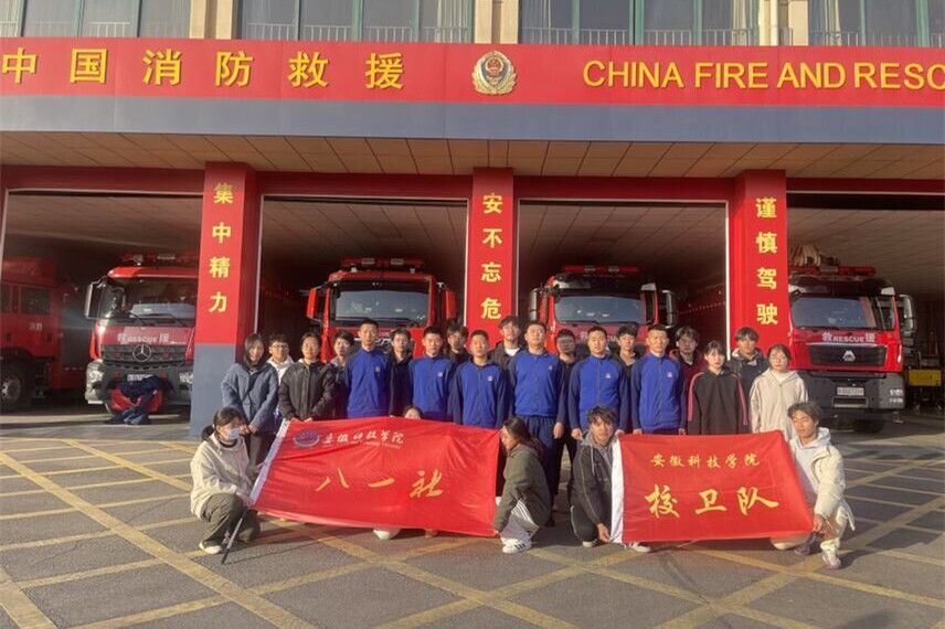 为进一步推进消防安全教育,增强学生消防安全意识,11月27日下午,保卫处消防科科长刘宇航、科员王婉兴带领校八一社、校卫队赴凤阳县消防救援局参观学习。