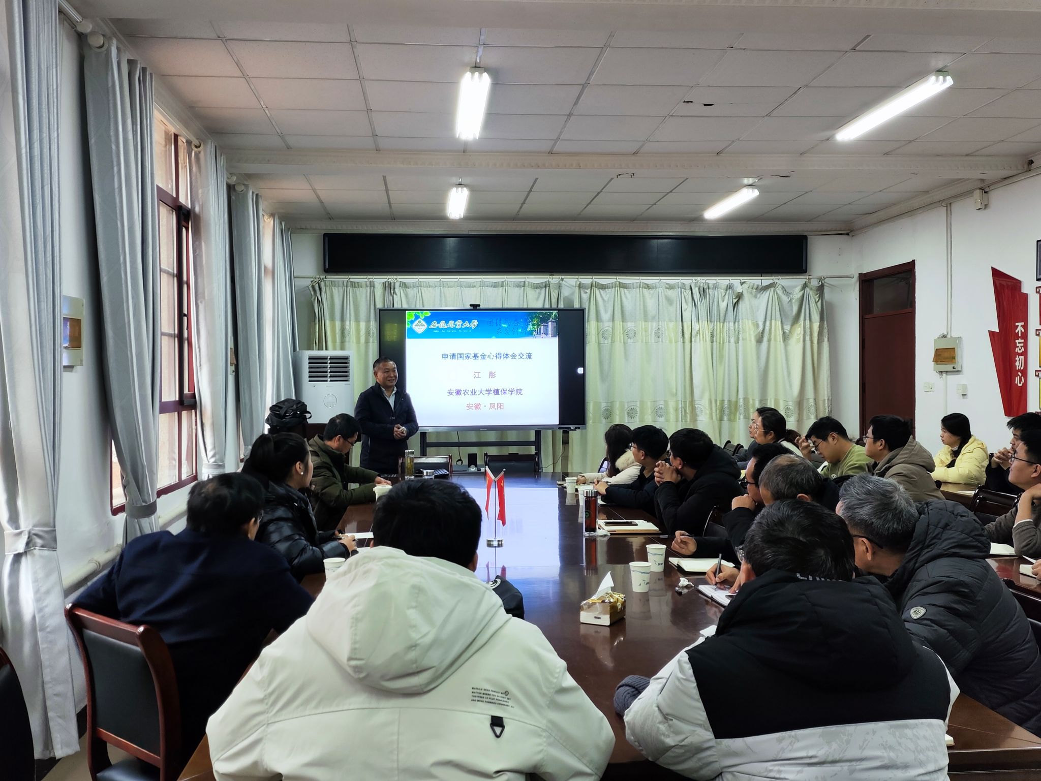 为做好2025年国家自然科学基金申报工作,提高基金申请书质量,12月19下午,农学院邀请安徽农业大学江彤教授来校作国家自然科学基金辅导报告。报告会由农学院党委副书记张轶辉主持,学院部分教师参加报告会。