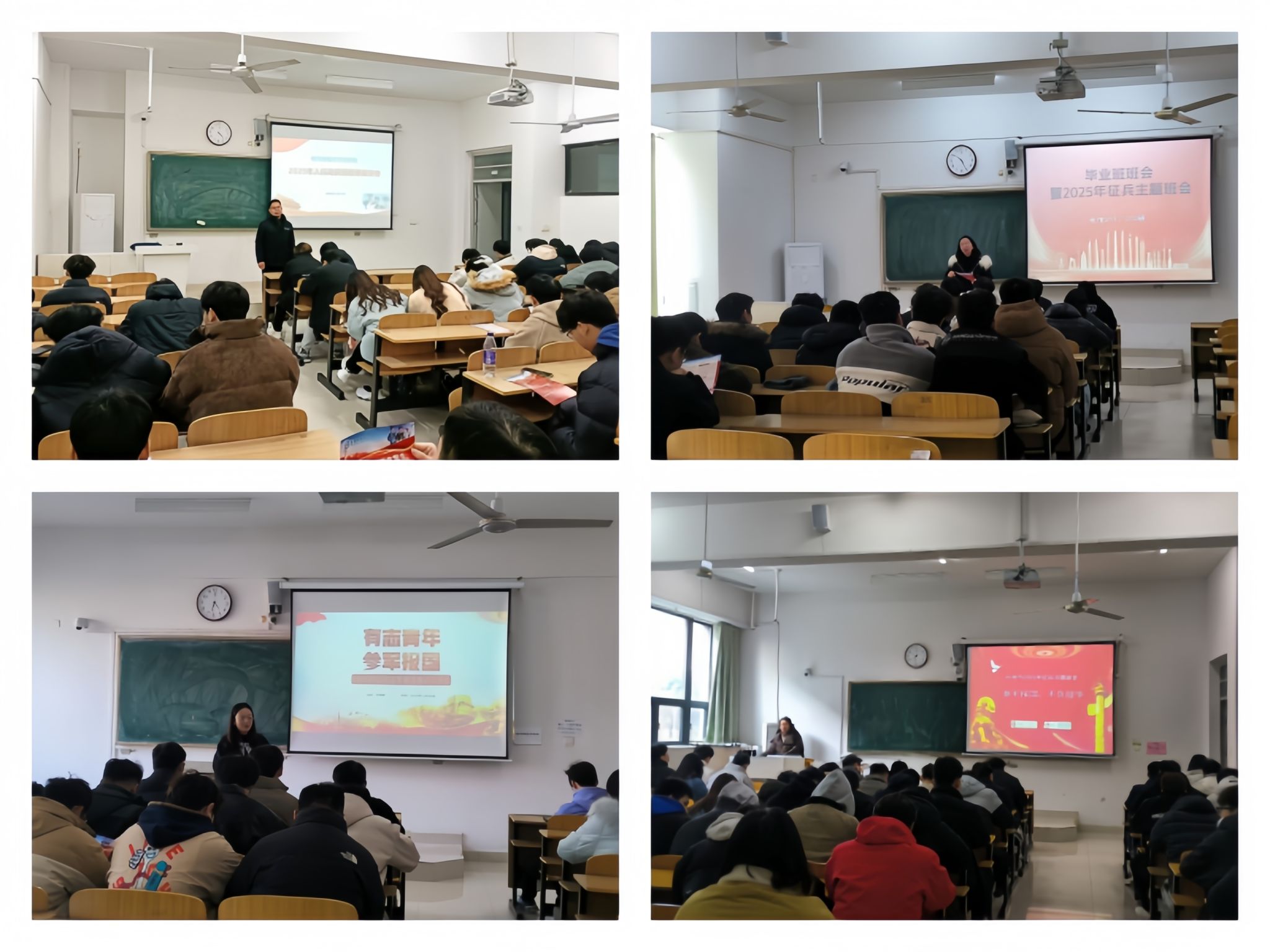 在主题班会开展过程中,各毕业班辅导员积极宣传、讲解征兵政策,引导毕业生树立正确的就业观和人生观。征兵工作联系人陈更强还分享了学院历年征兵情况及投身军营学生的典型事迹。