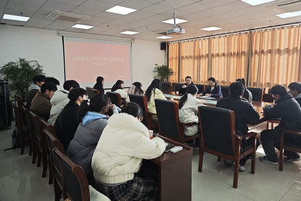 座谈会上,蚌埠高铁工贸园区管委会党工委书记、主任宗杨详细介绍了园区的发展规划、产业布局、科技成果、企业现状等,并与同学们进行了互动交流。青年学子们纷纷表示,通过此次观察团活动,了解到蚌埠的产业发展,未来将会积极投身蚌埠建设。