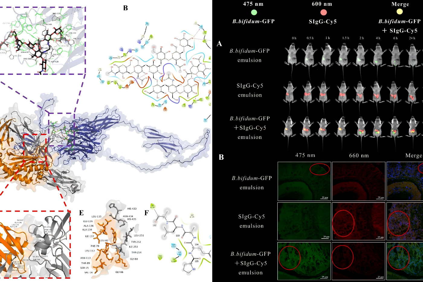母乳一直被认为是婴幼儿健康成长的“黄金营养源”,其中的免疫球蛋白G(IgG)不仅能增强免疫力,还可能在肠道微生物群的建立中发挥关键作用。陈春旭团队发现,母乳中唾液酸化IgG(SIgG)在B. bifidum的肠道定殖过程中扮演了“桥梁”角色。SIgG通过结合B. bifidum细胞膜表面的唾液酸酶SiaBb2及肠道上皮细胞表面的FcRn受体,形成“FcRn-SIgG-SiaBb2”轴,从而促进B. bifidum在肠道中的稳固定殖。