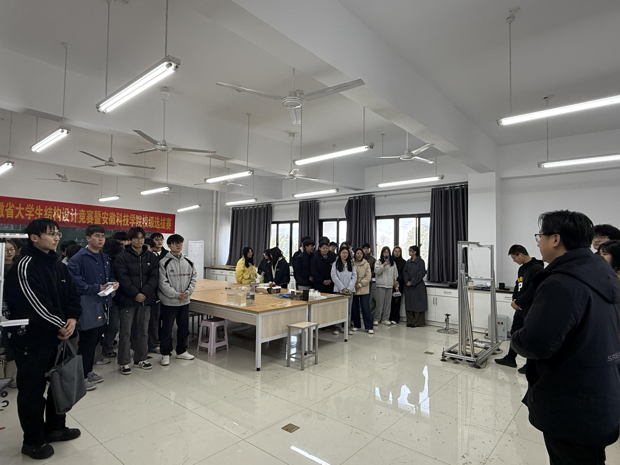 3月8日,我校第八届安徽省大学生结构设计竞赛选拔赛在龙湖校区尚行楼A圆满落幕。建筑学院副院长吴伟东莅临比赛现场并致辞,土木工程教研室相关教师参加本次比赛评审。