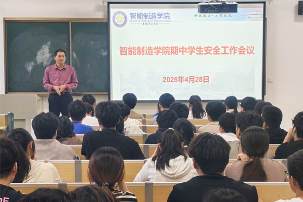 4月28日,智能制造学院在学思楼1号楼101教室召开期中学生安全会议。学院部分领导班子成员、部分教师和班级主要学生干部参加此次会议,会议由分团委副书记张立亮主持。