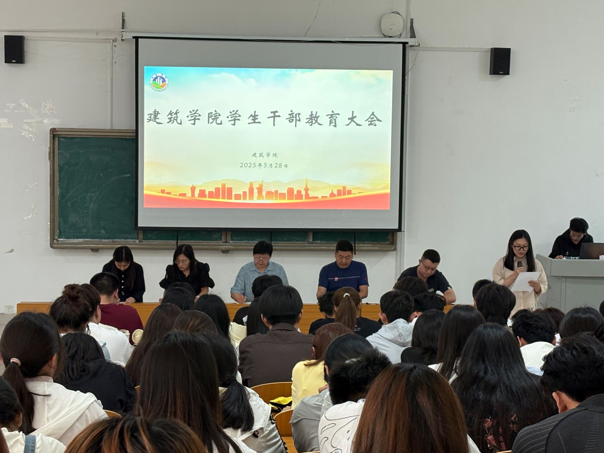 5月28日,建筑学院在敏行楼c102召开2024-2025学年第二学期学生干部教育大会。学院党委副书记谢宜勤、全体辅导员,非毕业班班长、团支部书记、学习委员及各学生组织成员参加会议,会议由专职辅导员武辉主持。