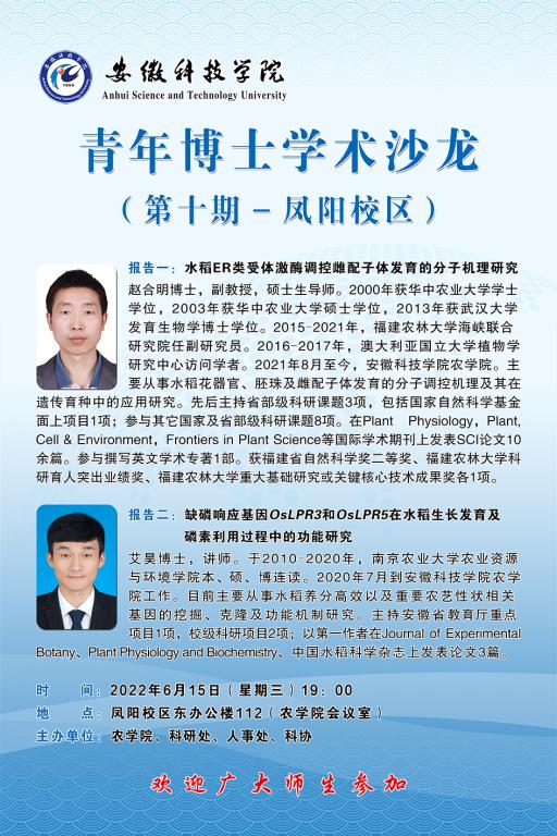 校学术系列报告——青年博士学术沙龙(第十期—凤阳校区)