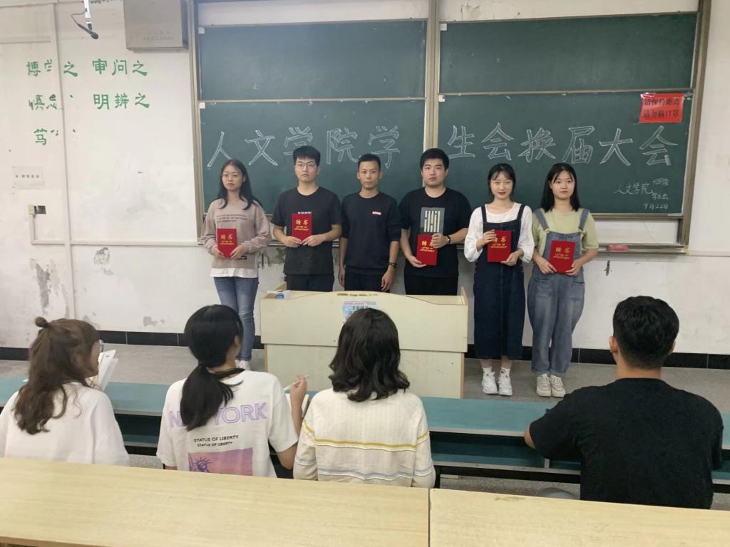 9月22日中午,人文学院于求知楼A101教室召开第九届学生会换届大会。学生会指导老师焦雪松出席会议。大会由学生会办公室部长李慧主持。
