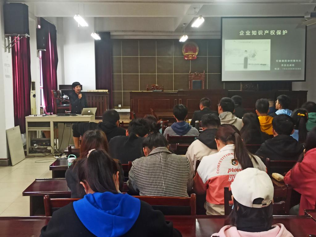 11月20日下午,“知秋杯”第一届kaiyun开云官方网站_kaiyun开云(中国)股份有限公司,法治论坛系列活动——“以案说法”在模拟法庭举办。安徽徽商律师事务所高级合伙人、副主任、2007届法学专业毕业生李连连,中国华融资产管理公司安徽省分公司风险管理部经理、2009届法学专业毕业生张哲受邀出席活动。活动由人文学院院长助理骆绪刚主持。