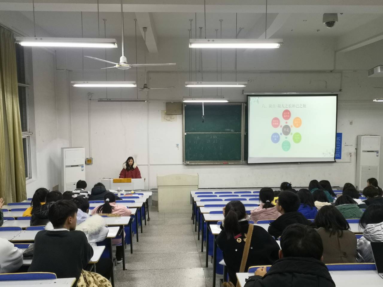 首先,夏清从思想、学习、工作、生活、素质五个方面建议受助学生要端正思想认识与学习态度,鼓励学生积极参加学校组织的各项文体活动,从德智体美劳五个方面提高自身综合素质。随后,黄梦云从人际关系、学习方式转变、心理调适三个方面进行了补充,并分享了几个保持快乐心情的技巧。宣讲现场氛围轻松欢快,学生皆认真听讲,积极互动交流。