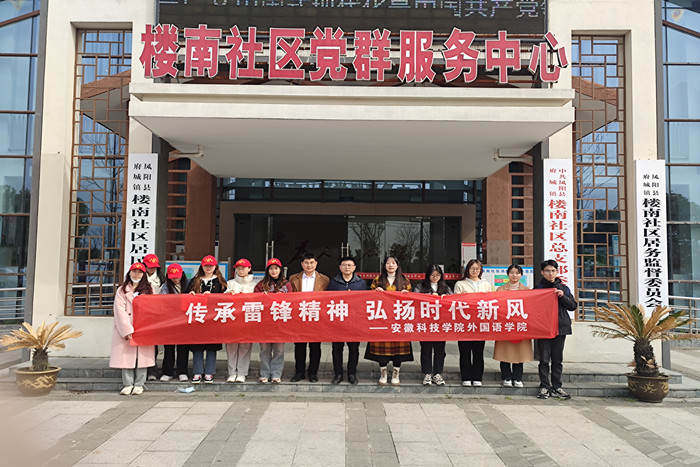 2023年3月初,外国语学院党委与凤阳县府城镇楼南社区党总支建立校地共建合作关系,同时学院团委与社区团支部签订校地志愿服务合作协议。在之后的9个月里,翻译专业学生党支部和英语专业学生党支部的党员、入党积极分子组成志愿服务团队,定期赴当地开展社区志愿服务工作,协助社区开展了“防范电信诈骗,打击违法犯罪”“提升公众安全感和群众对政法机关工作满意度”“禁毒知识”“全民普法”“全民学宪法”“三公里”就业圈app、“防溺水”“普通话推广”“科普中国”等宣传工作,并积极参与儿童心理辅导、平安凤阳建设、照顾社区老人、清扫社区环境、城市文明创建等活动。在社区志愿服务中,他们践行了“全心全意为人民服务”的宗旨,发挥了高校服务地方的功能,让青春之光在基层绽放绚丽之花。