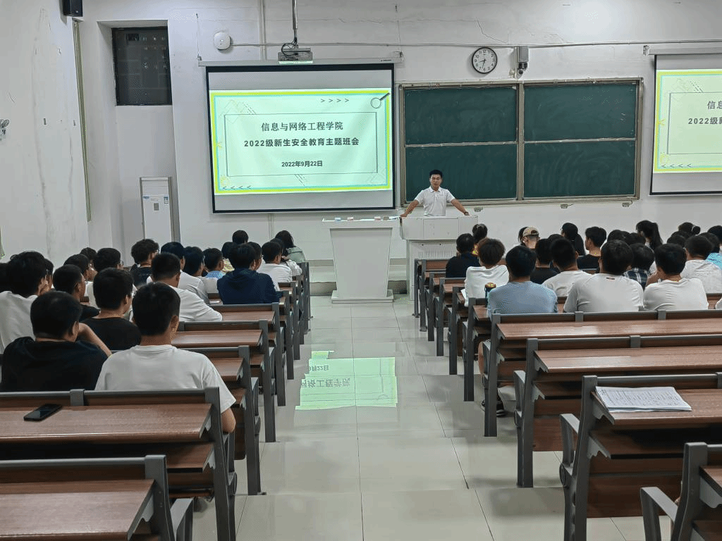 为进一步加强学生的安全教育管理,信息与网络工程学院2022级各班陆续召开安全教育主题班会。会上,各专业辅导员带领大家共同学习了《信息与网络工程学院2022级新生安全承诺书》,对2022级新生提出了“五要”、“七不”等十二个方面的安全管理规定。教育的内容涉及学生财务安全、交通安全、公寓安全、人身交往、防诈骗、防溺水、军训安全和请假管理等与新生生活密切相关的方方面面;各新生辅导员要求新生要自觉按照学校规定,切实做好疫情防控工作,继续做好核酸检测工作,做到不漏报、不瞒报、不迟报,尽量减少不必要的外出,不得到疫情中、高风险地区。