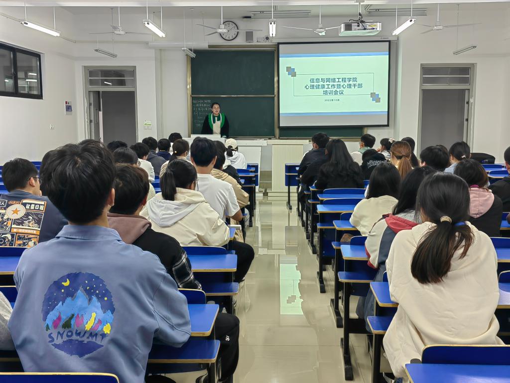 为提高学院学生心理健康工作的针对性和有效性,进一步提升心理健康工作水平,10月26日下午,信息与网络工程学院于尚行楼c204教室召开心理健康工作暨业务培训会。学院各班级心理委员、心理委员联合会全体成员参加会议,会议由学院团委书记汪琦主持。