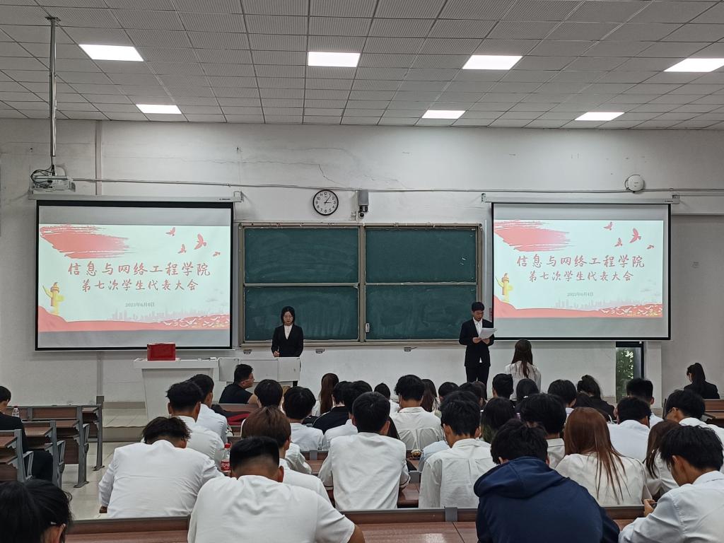 大会听取审议并通过了信息与网络工程学院学生会工作报告,表决通过了《选举办法》和监票人、计票人名单,宣读了校团委校学生会的文件批复,介绍了候选人基本情况,选举产生3名第七届学生会主席团成员和35名新一届学生委员会委员。
