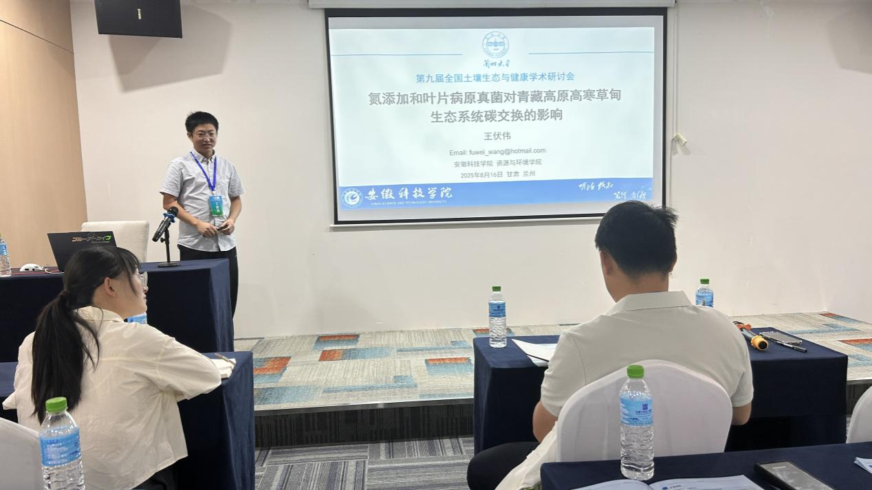 资源与环境学院汪建飞教授、袁先福博士和王伏伟博士应邀参会。王伏伟博士以“氮添加和叶片病原真菌对青藏高原高寒草甸生态系统碳交换的影响”为题作了学术报告。报告系统分析了氮输入和叶片病原真菌对青藏高原高寒草甸生态系统碳交换的影响及作用机制,发现氮添加和叶片病原真菌对高寒草甸生态系统碳交换的影响无交互效应。氮添加通过增加叶片氮含量和植物生物量来增加生态系统总初级生产力和生态系统呼吸。施用杀真菌剂通过抑制真菌病害来增加生态系统总初级生产力和净初级生产力。叶片病原真菌是影响青藏高原高寒草甸生态系统碳固定的重要生物因子。研究结果为未来全球变化背景下高寒草甸植病保护和应对气候变化提供了理论依据和技术支撑。