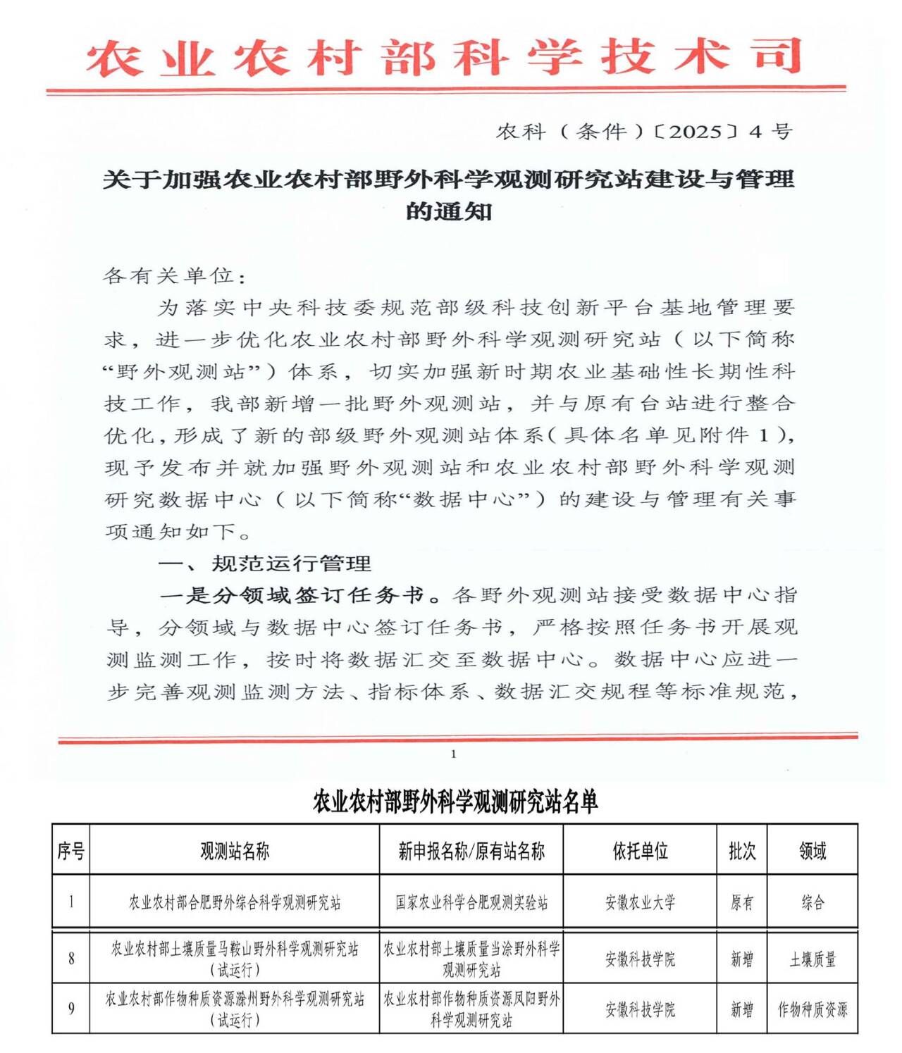 近日,由kaiyun开云官方网站_kaiyun开云(中国)股份有限公司,申报的“农业农村部土壤质量马鞍山野外科学观测研究站”获批正式立项建设,这是我校首次获批立项建设的农业农村部野外科学观测研究站,由资源与环境学院李飞跃教授担任站长。