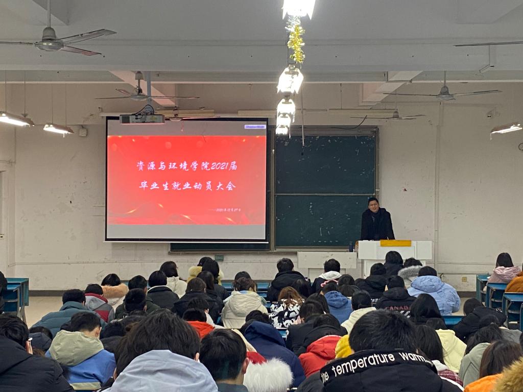 为全面部署就业工作,构建全员服务就业、全方位推动就业的工作格局,12月29日晚上,资源与环境于新知楼B304召开2021届毕业生就业动员大会,党总支副书记沈树周,副处级辅导员谢宜勤,毕业班辅导员杨小晗,就业联系人王丽萍出席本次会议,2021届全体毕业生参加。会议由杨小晗主持。