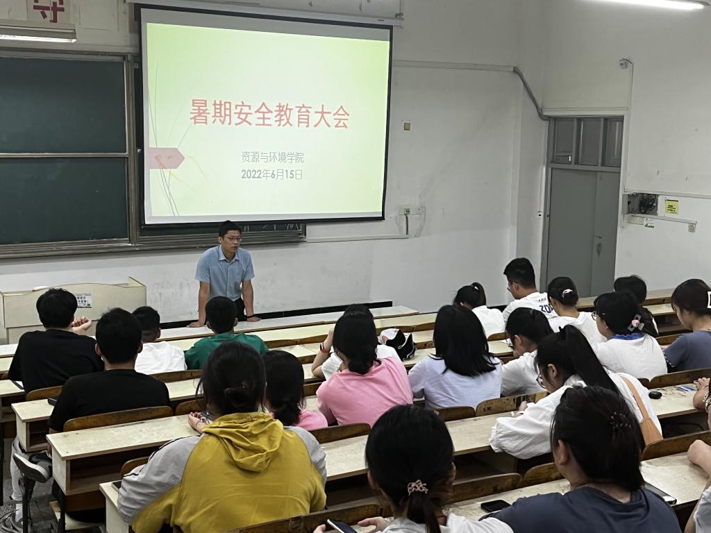 为扎实做好暑期学生安全教育工作,确保留校学生及返乡学生安全管理工作有效推进,资源与环境学院分专业分主题开展暑期安全教育工作。