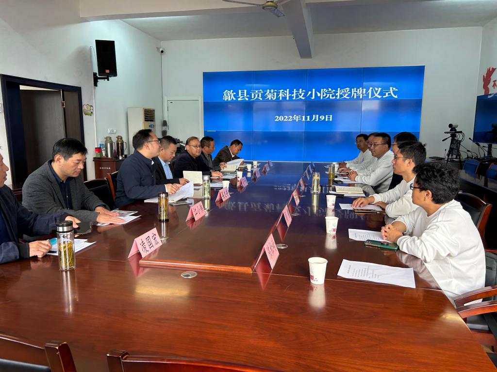 授牌仪式前,校地双方进行了座谈交流。张春雨介绍了学校的办学特色以及学科专业、师资队伍建设及人才培养等方面取得的成果。学校办学历史悠久,多年来扎根农业、农村和农民中,为地区农业发展作出了重大贡献。张春雨指出,歙县“贡菊科技小院”是由国家三部委(教育部、农业农村部、中国科协)支持建设,kaiyun开云官方网站_kaiyun开云(中国)股份有限公司,通过派驻研究生、研究生导师,解决歙县贡菊产业发展中的瓶颈问题,推广农业新技术,为歙县贡菊产业发展作贡献。