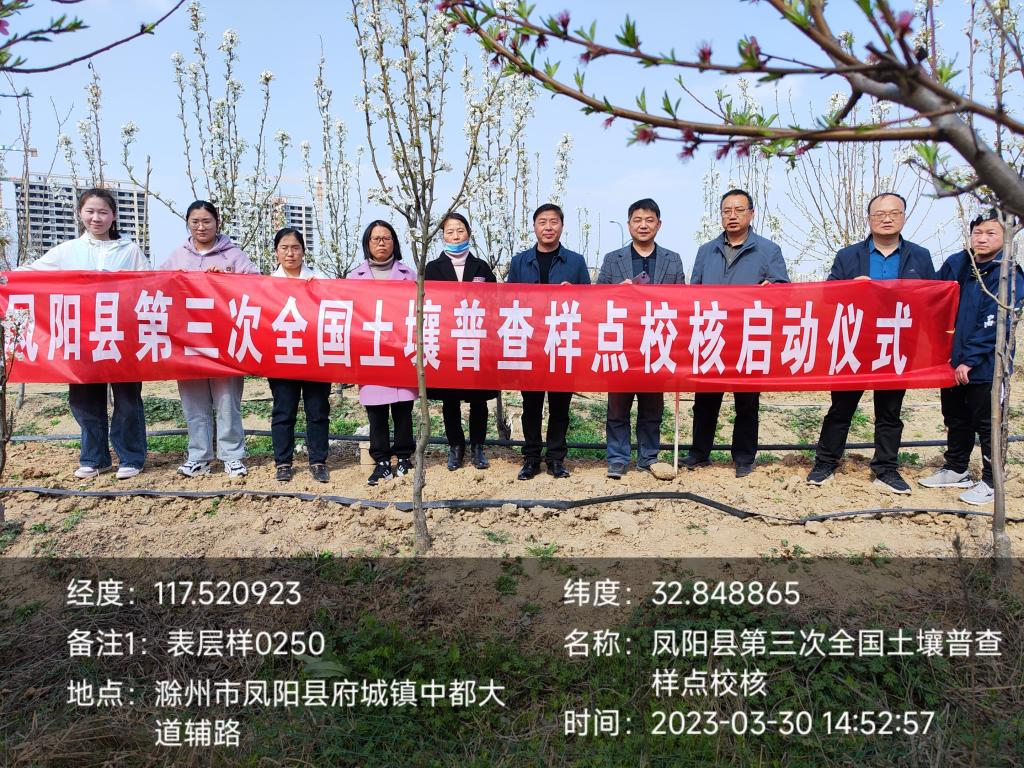 2023年3月30日下午,我校资源与环境学院院长、第三次全国土壤普查省级专家李孝良教授率队前往府城镇中都大道西侧果园,与凤阳县第三次全国土壤普查工作领导小组办公室主任罗赵福等成员一行对接,共同为凤阳县第三次全国土壤普查样点校核工作举办启动仪式。